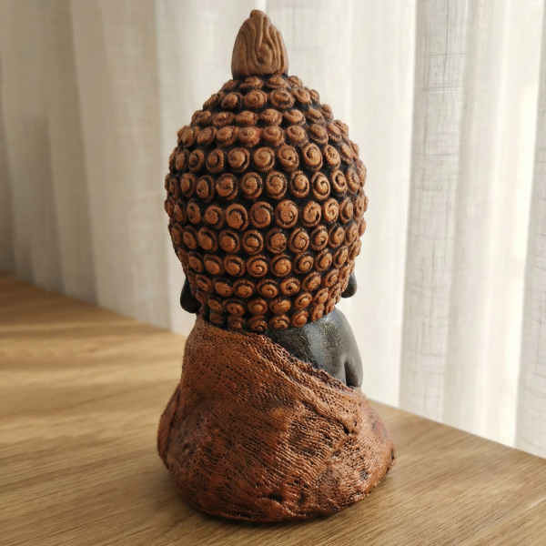 Significado: El Buda Niño en posición de oración simboliza la paz interior, la pureza y la gratitud, invitando a conectar con la serenidad y la armonía en el hogar. Medidas aproximadas: 15 cm de alto. Material: Yeso pintado a mano con intervención artesanal en tela. Pieza única: cada Buda es irrepetible, con terminaciones exclusivas.